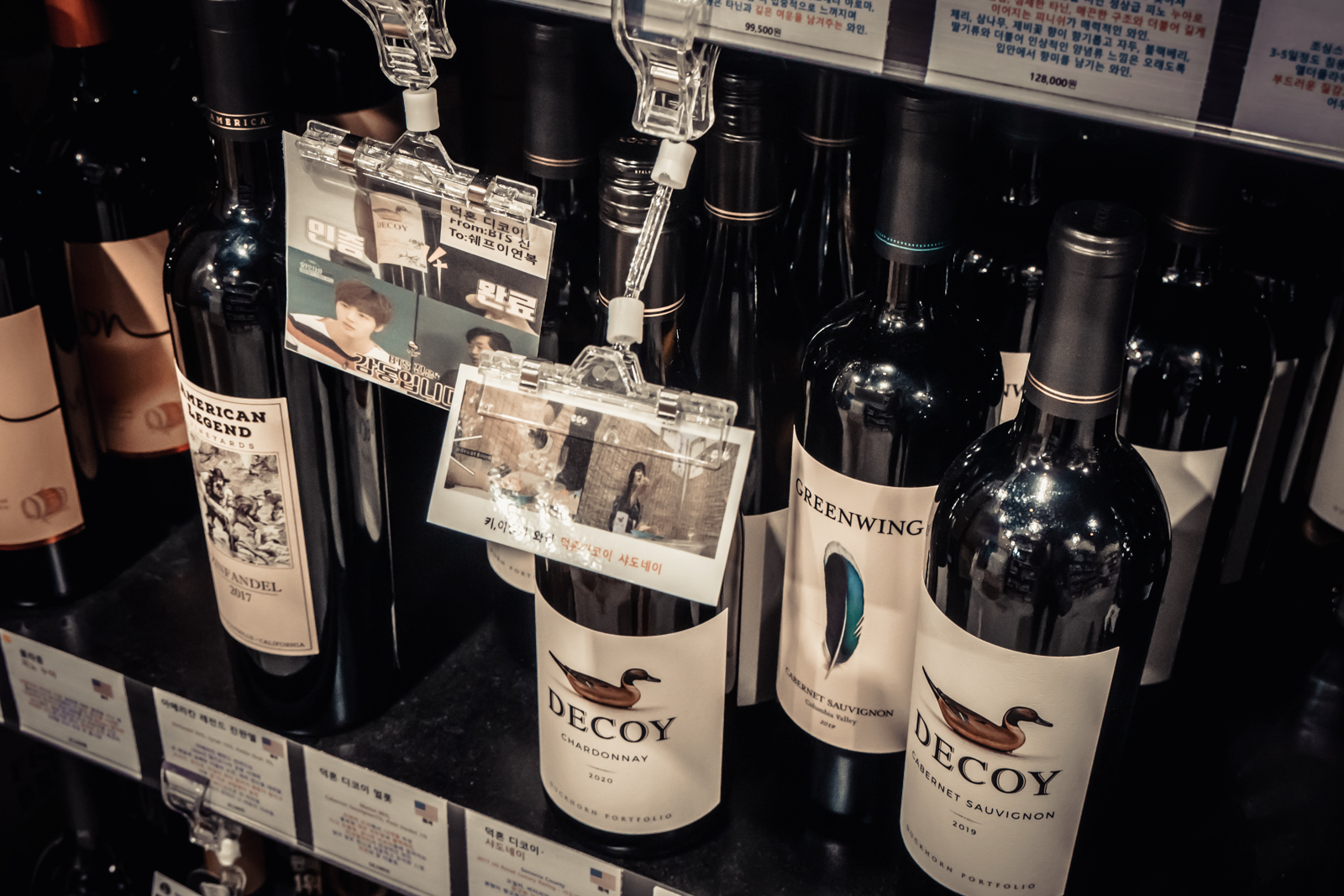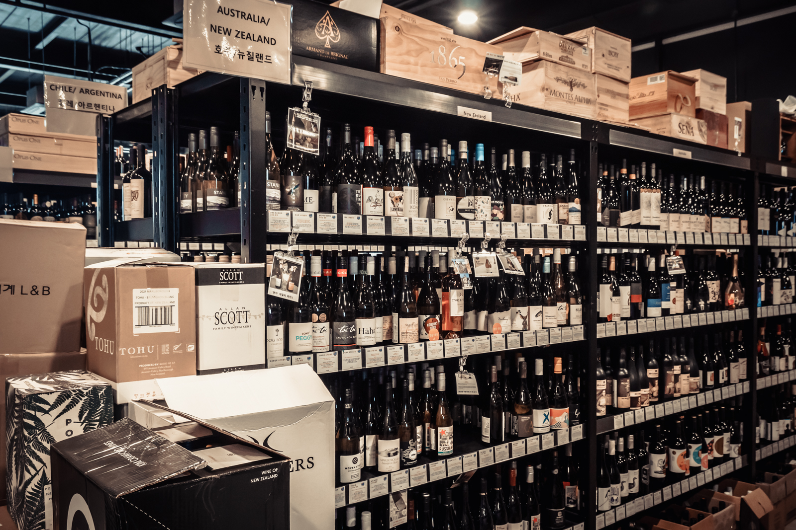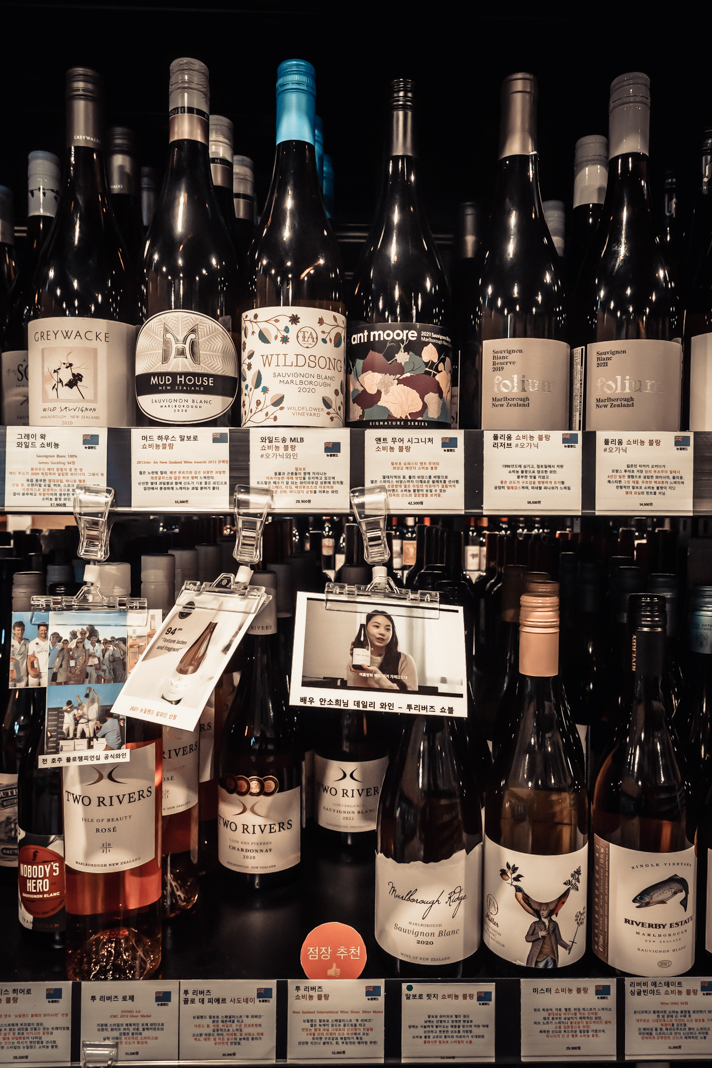 두 번째 코너는 호주, 뉴질랜드에서 생산된 와인이 진열장 가득 채워져 있었다. 중간중간 연예인과 스타가 방송에 출연해 소개했던 제품도 볼 수 있었는데 평소 와인을 잘 모르는 사람들이라면 제주 와인창고 점장님이 추천하는 제품이나 연예인들이 마셨던 와인부터 도전해보는 것도 좋을 것 같았다.