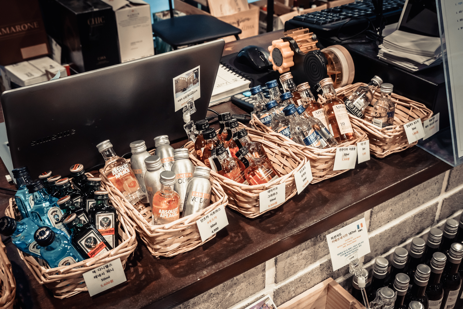 카운터 앞에는 미니어처 크기로 구성된 50ml 위스키가 있었다. 평소 와인뿐만이 아니라 위스키에 관심이 많아 미니어처를 봤을 때 종류별로 하나씩 사서 인테리어 소품으로 활용하고 싶다는 생각을 들게 했으며 제주도 선물로도 추천하고 싶었다.