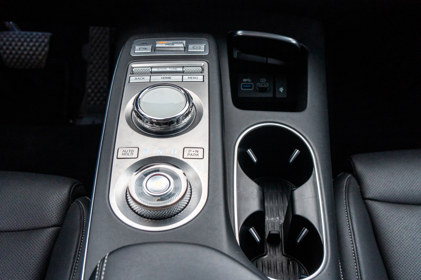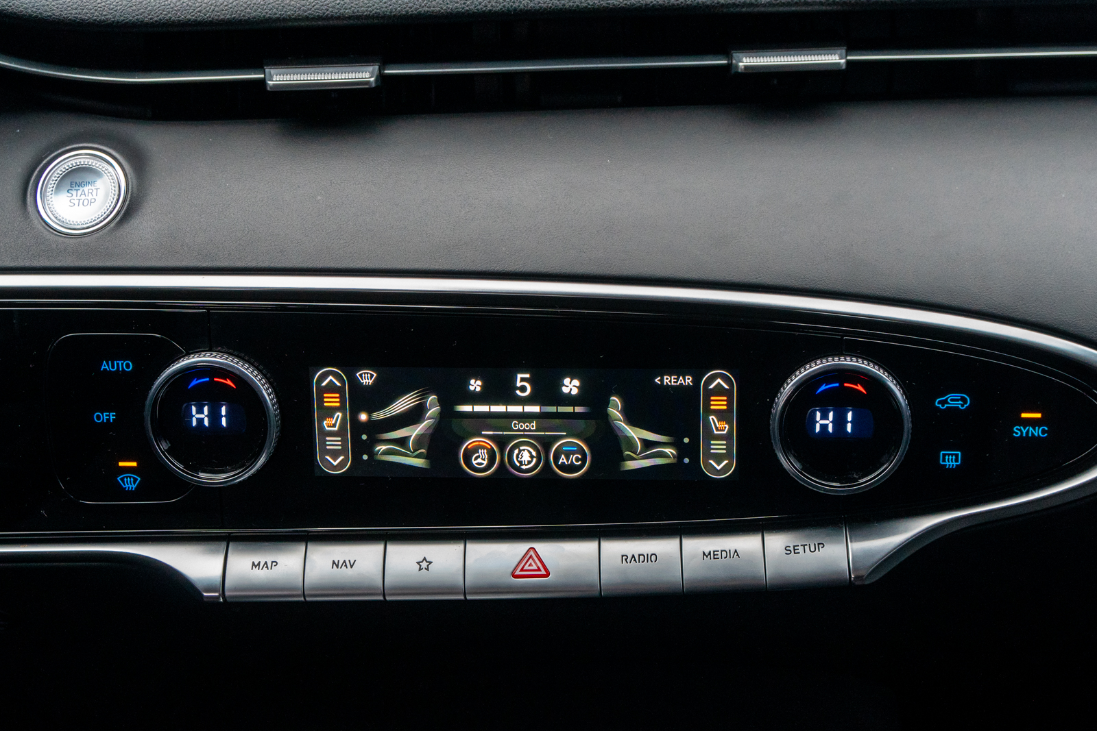 제네시스 GV70은 기어가 핸들형이며 사이드브레이크는 따로 설정하지 않아도 오토로 맞춰진다. 또한 에어컨 온도 조절은 앞면에 터치로 조절할 수 있는데 처음 사용하는 분들도 손쉽게 사용이 가능하다.