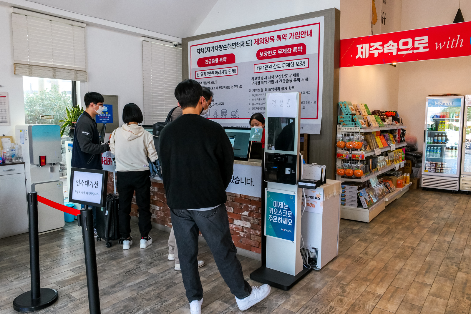 제주도 렌트카 추천 유레카에 도착한 후에는 라운지에 있는 무인 키오스크나 직원의 안내에 따라 제주속으로 홈페이지에서 예약했던 차량을 인수받을 수 있다.