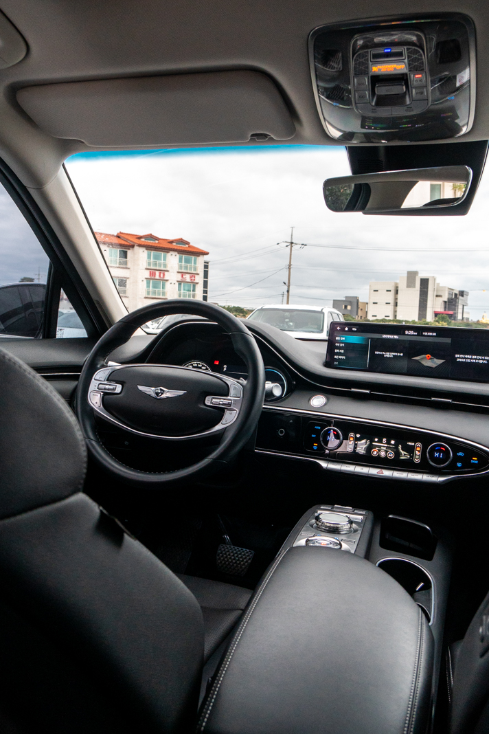 제네시스 GV80 운전석을 열면 전체적으로 깔끔하게 관리가 되어 있었고 의자에 앉으면 전동시트가 알아서 위치를 맞춰주어 무척 편리했다.