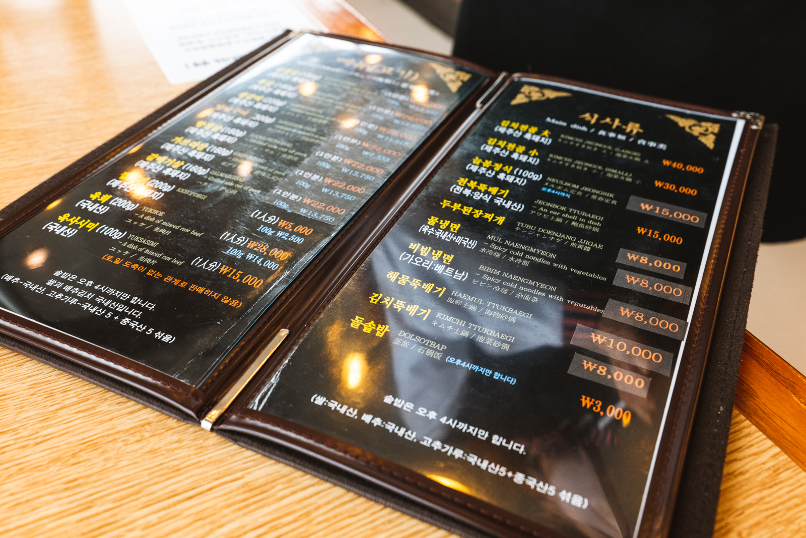 제주 흑돼지 맛집 늘봄흑돼지 2층으로 올라가면 깔끔하고 단정한 유니폼을 입은 직원이 직접 자리를 안내해준다. 테이블에 앉아 메뉴판을 보니 늘봄정식 외에 김치전골, 전복뚝배기, 두부된장찌개, 냉면 등 점심 특선으로 먹기 좋은 메뉴가 있었다.