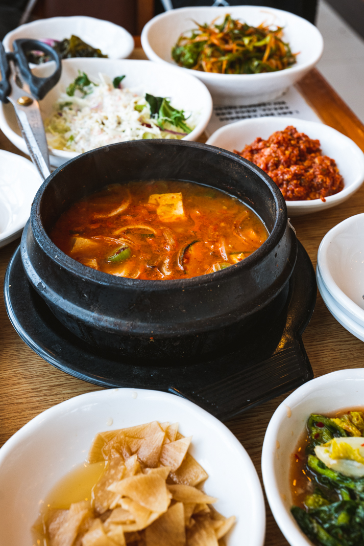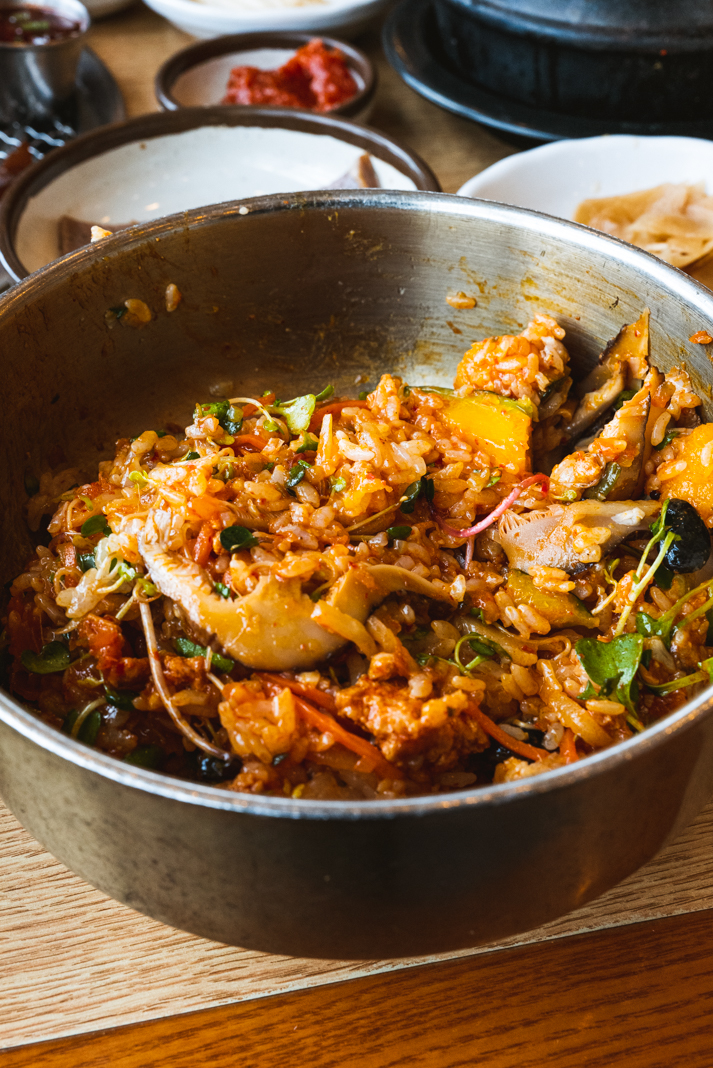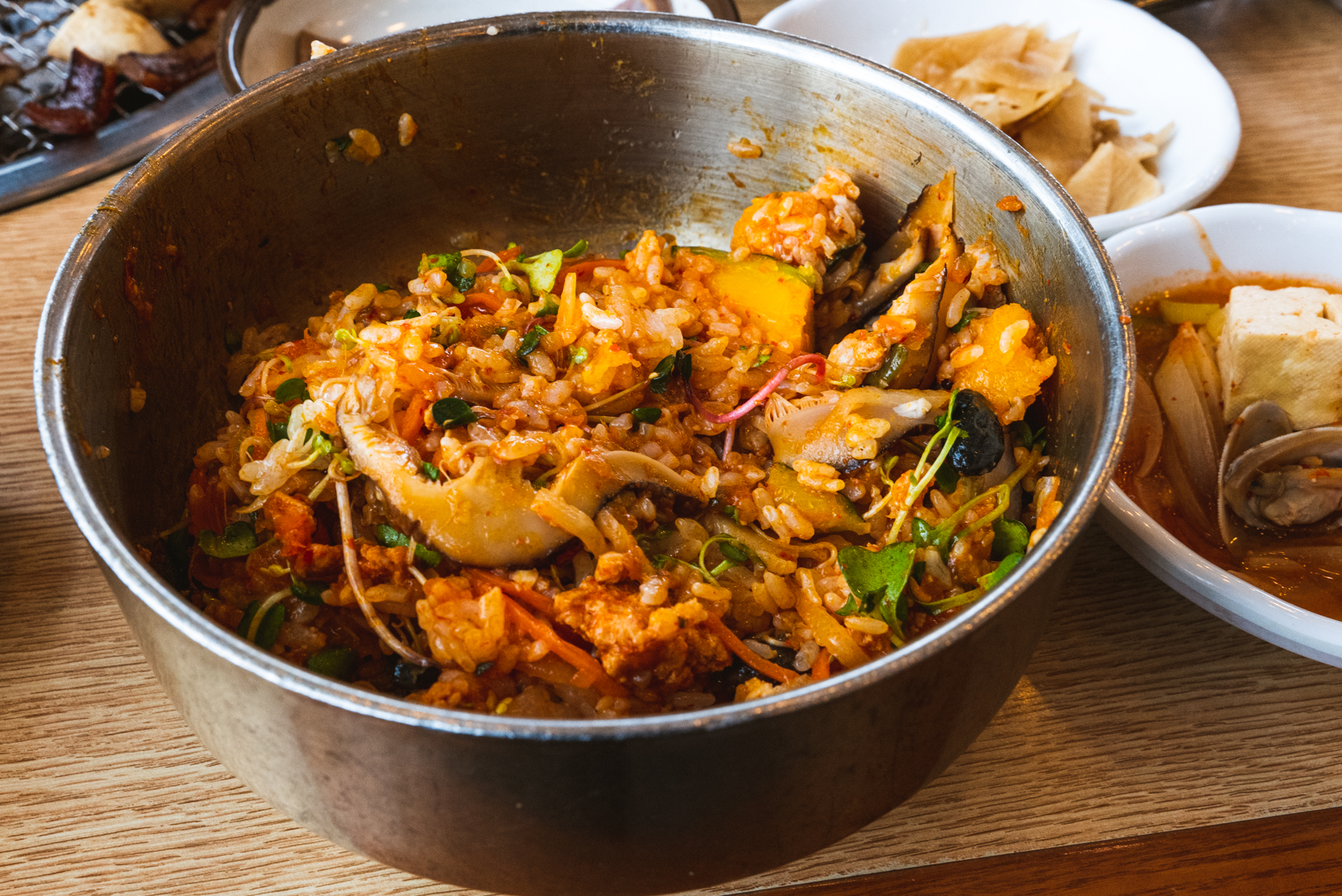 돌솥밥에 있는 밥을 야채가 들어간 그릇에 넣은 후 제주 늘봄흑돼지에서 직접 만든 강된장을 넣고 비벼주면 된다. 강된장은 짜지 않고 된장 특유의 풍미가 느껴지는데 먹으면 먹을수록 계속 먹고 싶은 중독성이 있어 재방문 의사가 충분했다.