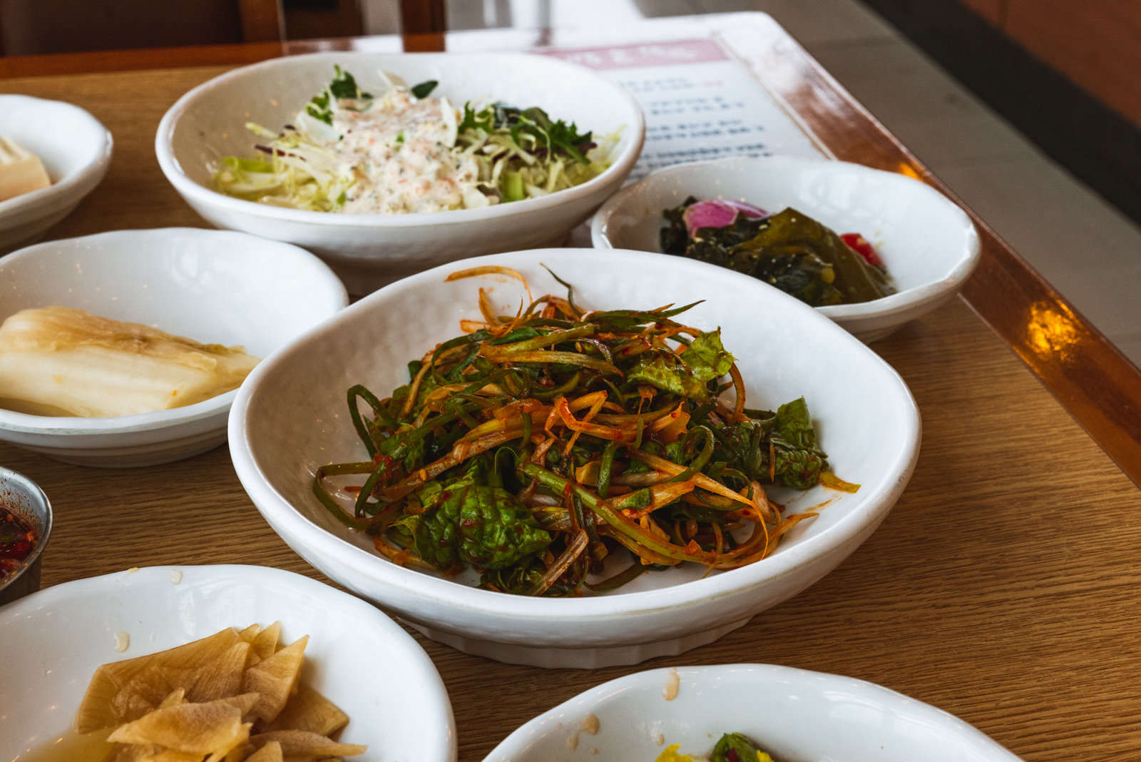 늘봄정식을 주문하고 잠시 기다리면 흑돼지 고기, 돌솥밥과 함께 먹기 좋은 각종 밑반찬이 나온다. 샐러드부터 무침 반찬은 모두 하나같이 정갈했고 자극적이지 않아 남녀노소 누구나 좋아할 만한 맛으로 부모님이나 가족과 함께 가서 먹기 좋아보였다.
