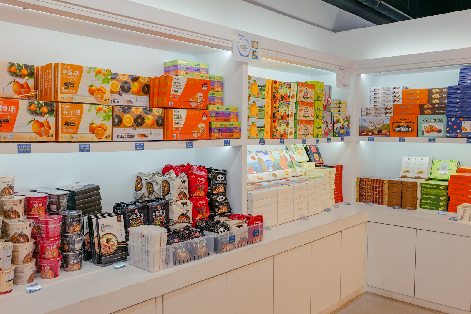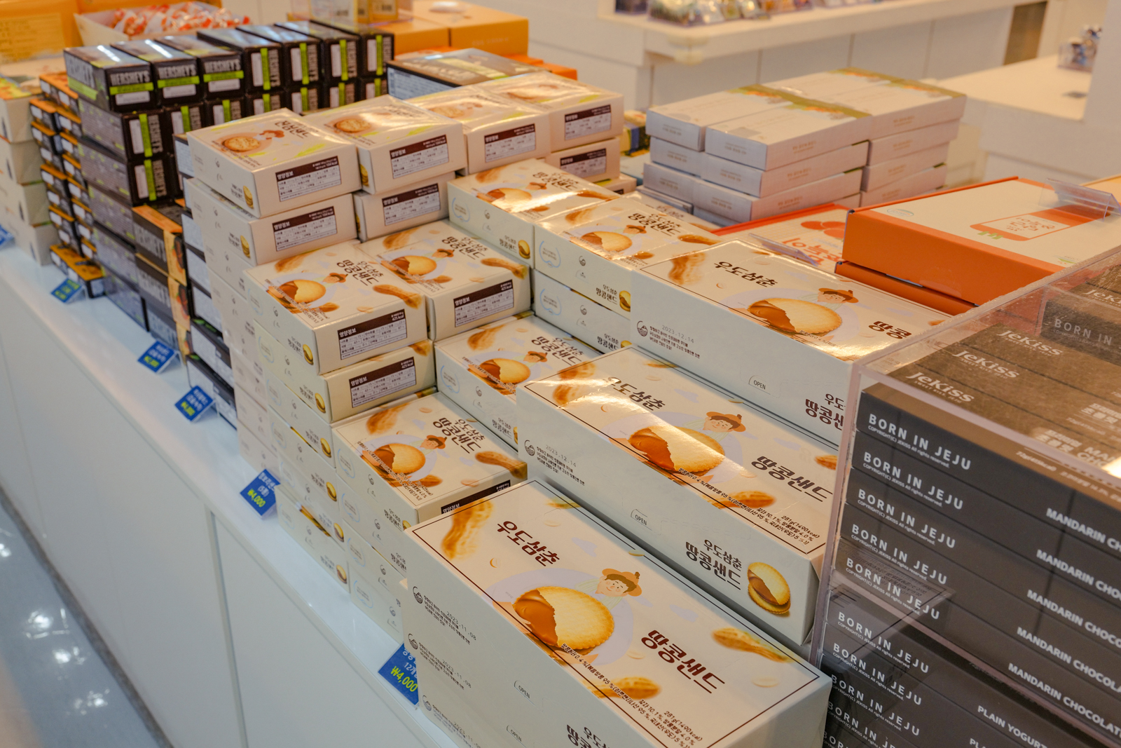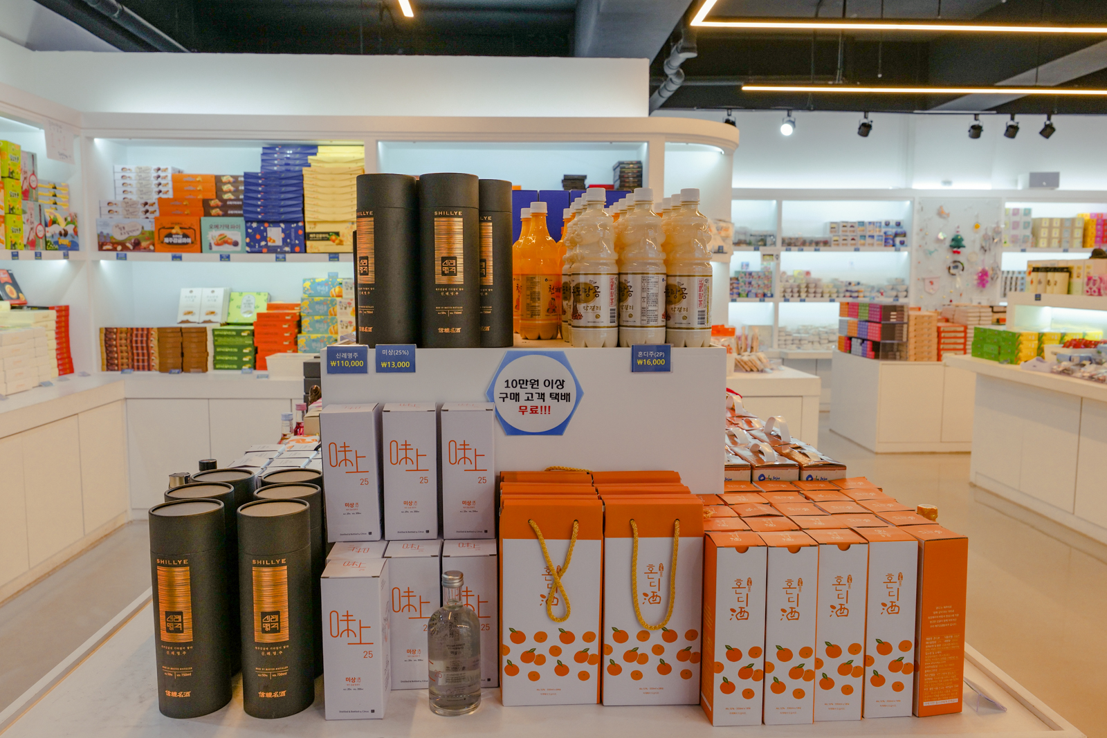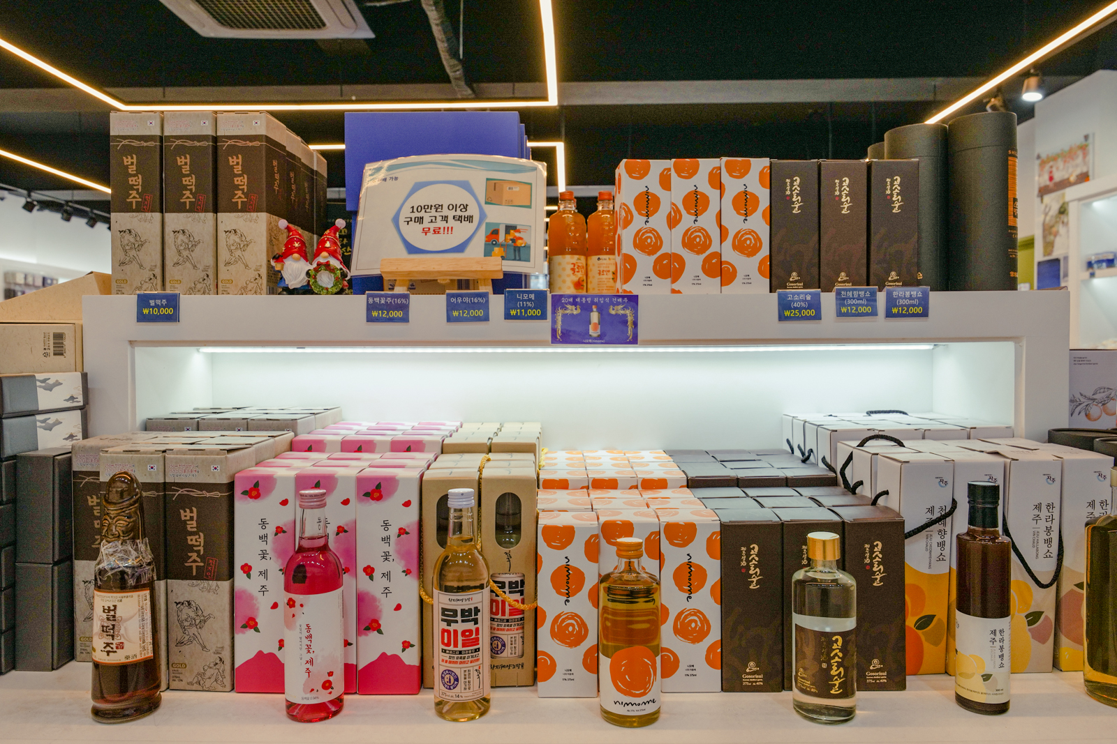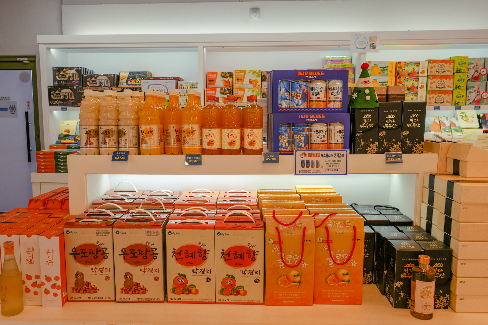 부모님 선물이나 집에서 마시기 좋은 막걸리와 전통주는 먹거리 코너 앞 진열장에 가지런히 있었다. 제주도 대표 전통주인 오메기술, 고소리술뿐만 아니라 벌떡주, 신례명주도 있었으며 우도땅콩, 천혜향, 감귤 막걸리는 무슨 맛일지 궁금증을 불러일으켰다.