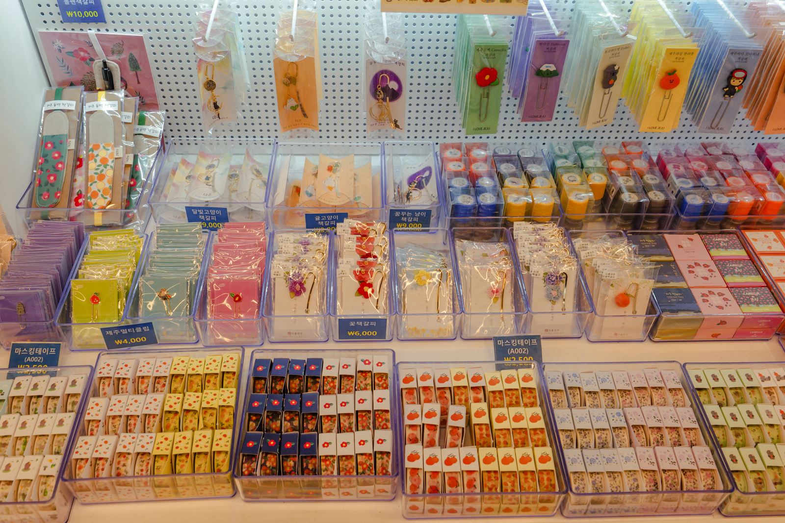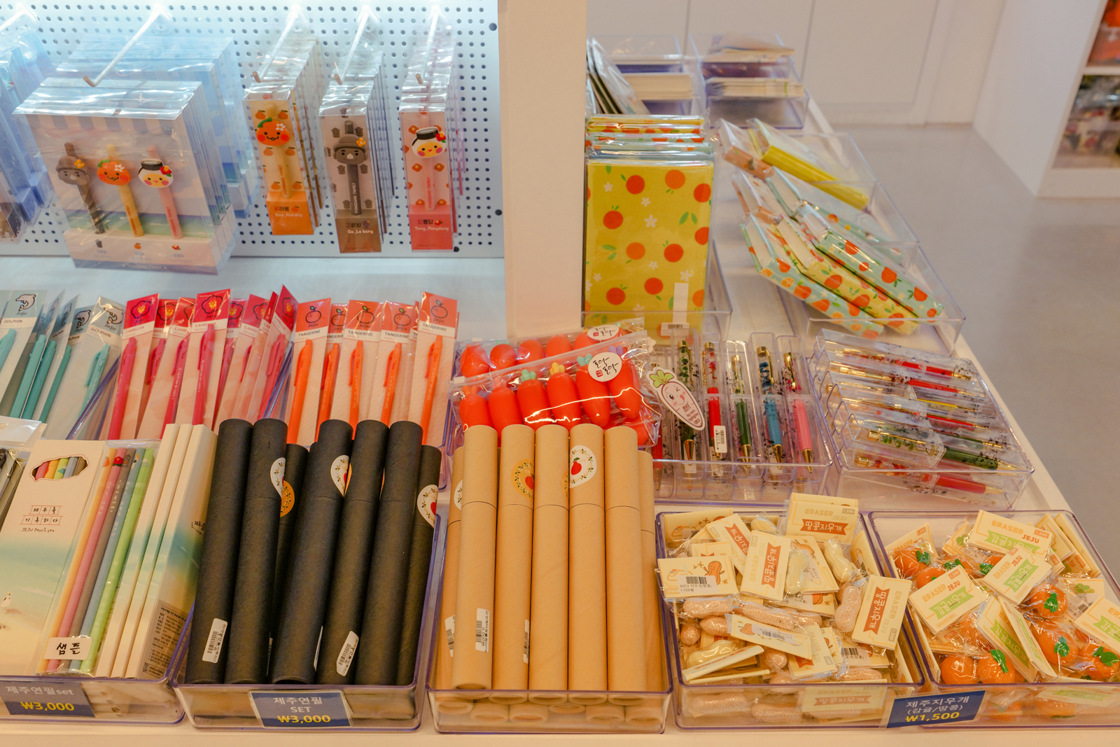 제주도 소품샵 만달에는 직장인, 학생을 위한 학용품 코너도 있다. 문구류로는 마스킹테이프, 스티커, 연필, 볼펜, 지우개 등이 있었으며 낱개로 하나씩 고를 수 있었다.