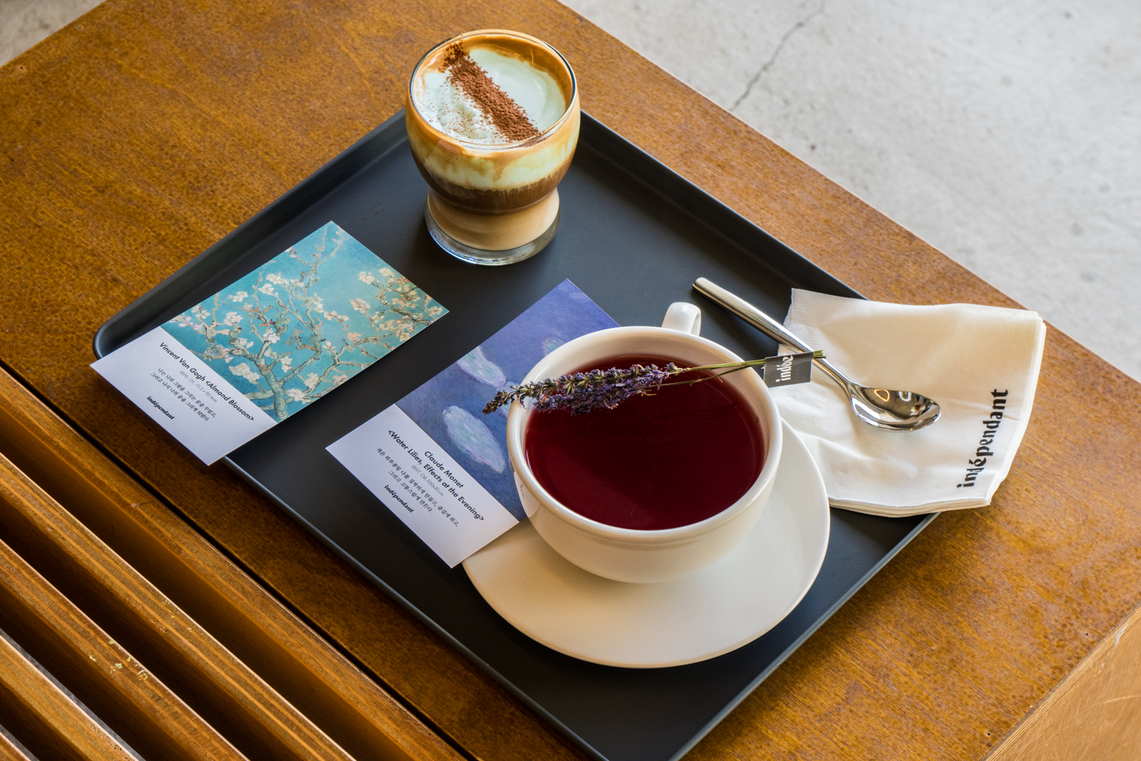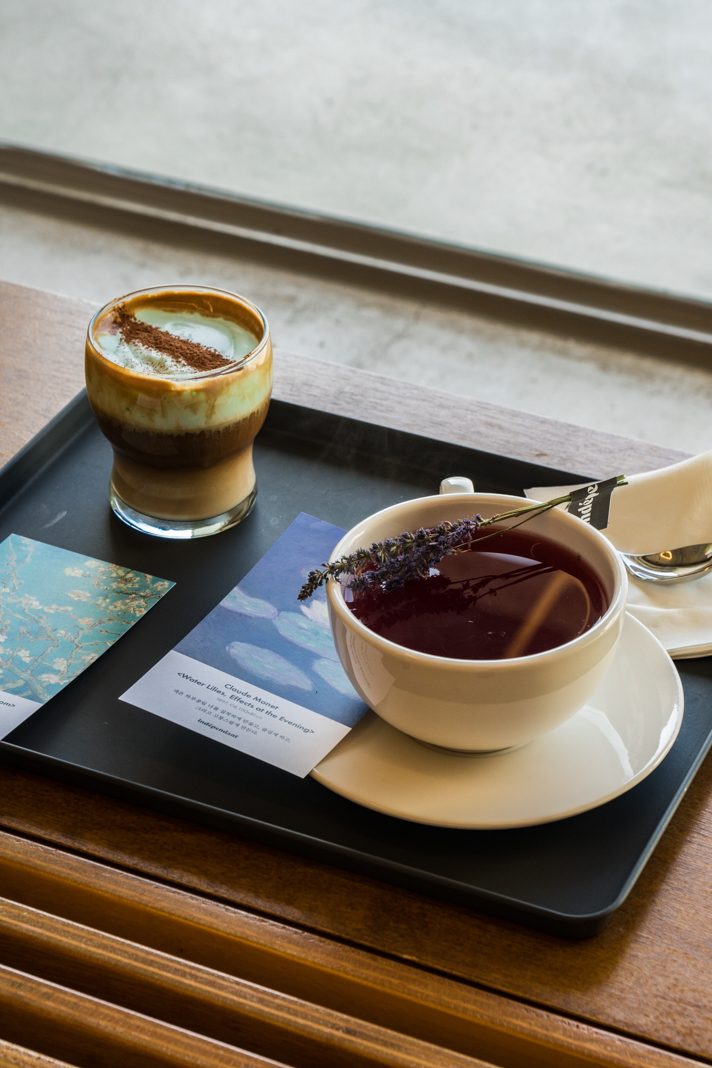 처음 방문하는 분들이 메뉴를 쉽게 선택할 수 있도록 메뉴 표시가 상세히 되어 있었으며 빈센트 크림 커피, 반고흐 별밤 에이드, 로스코 선셋 아이스, 마멜(마시멜로우) 우유 등 시그니처 음료도 있었다.