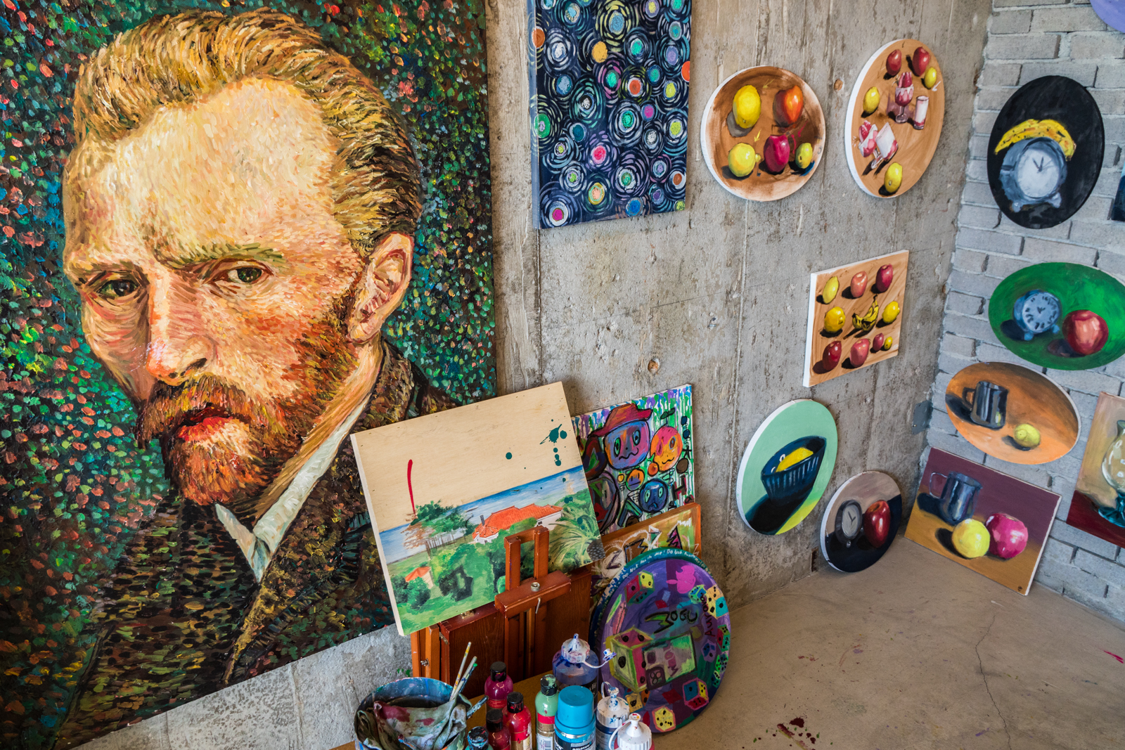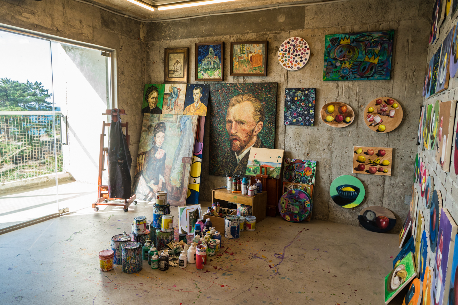 제주 애월해안도로 앙데팡당 3층 공간에는 빈센트 반고흐의 모습과 여러 그림이 담긴 아트 갤러리도 있었다. 평소 만나보기 힘든 다양한 그림 작품을 카페에 가서 볼 수 있다는 점이 신기했고 그림을 배겸 삼아 여행 사진을 찍어 추억도 남길 수 있어 연인들의 데이트코스로 선택해도 좋아보였다.