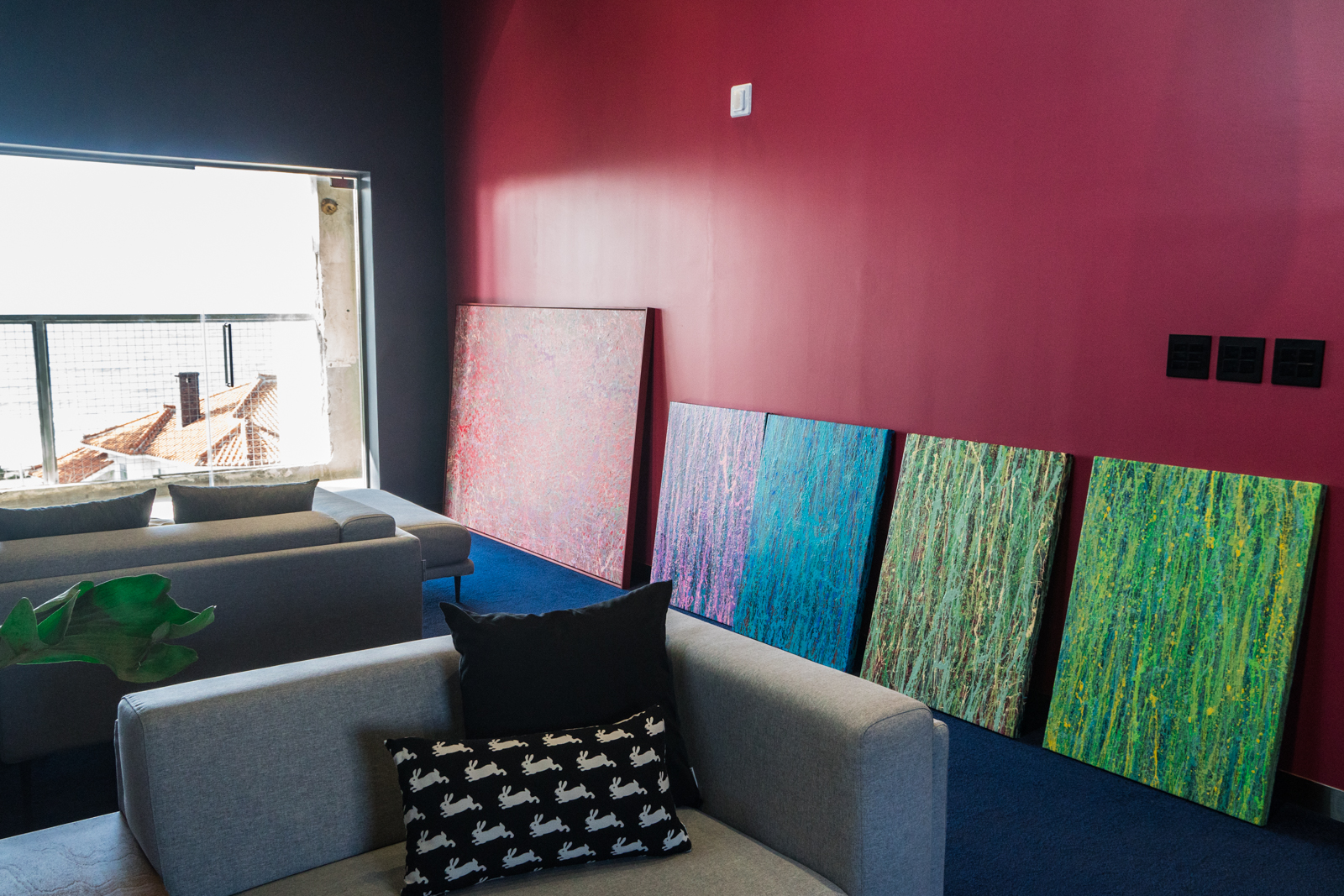 제주 애월 카페 앙데팡당에서는 단순히 아트 작품 감상만 아니라 미술 그리기 체험도 할 수 있다. 한쪽 벽면에는 이곳을 다녀간 방문객이 그린 그림과 함께 이름이 담겨 있었는데 체험과 관련된 사항은 앙데팡당 공식 인스타그램이나 전화로 문의해보자.