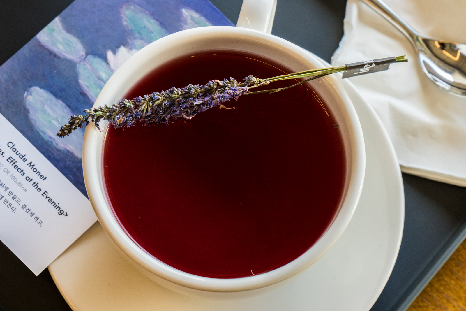 방아꽃 티스틱이 올려져 있어 고급스러웠던 히비스커스 차도 사진에 보이는 것처럼 색깔이 진했고 입 안 가득 상큼함을 안겨주는 맛을 자랑했다.