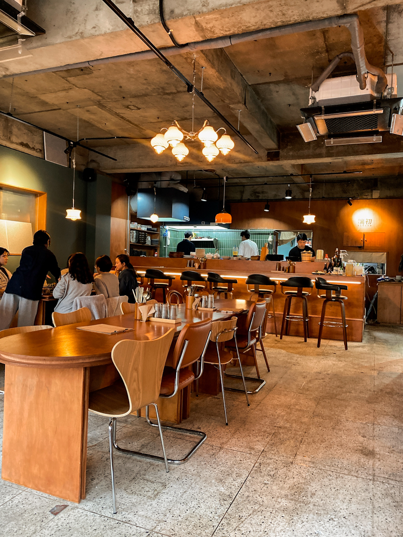 제주 모토이시 연동점으로 들어가면 여러 곳에 테이블이 마련되어 있다. 내부 공간이 살짝 비좁았고 식사를 하러 온 손님이 많았기에 주말에 간다면 미리 예약을 하는 게 좋다.
