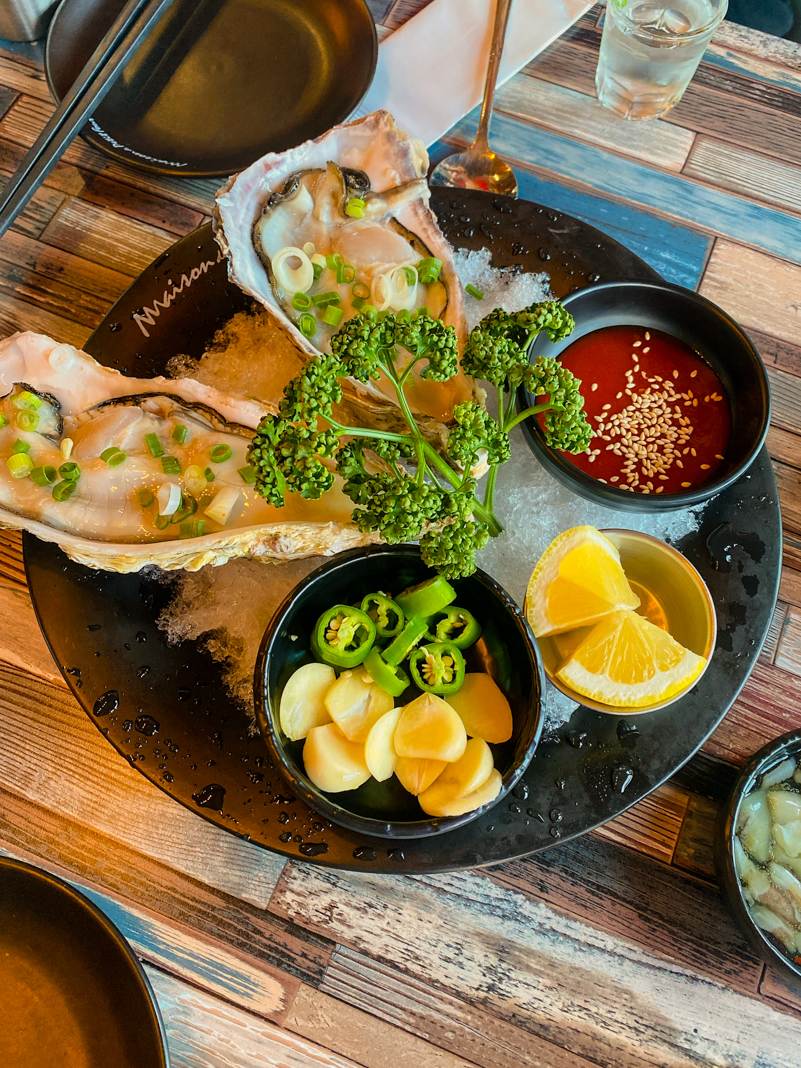 삼배체굴은 독성이 없고 2~3년이라는 시간 동안 소중하게 보한 프리미엄 굴로 함께 나온 레몬과 마늘, 고추, 소스를 담으면 더욱 맛있는데 신선하면서 두툼한 맛을 자랑했다.