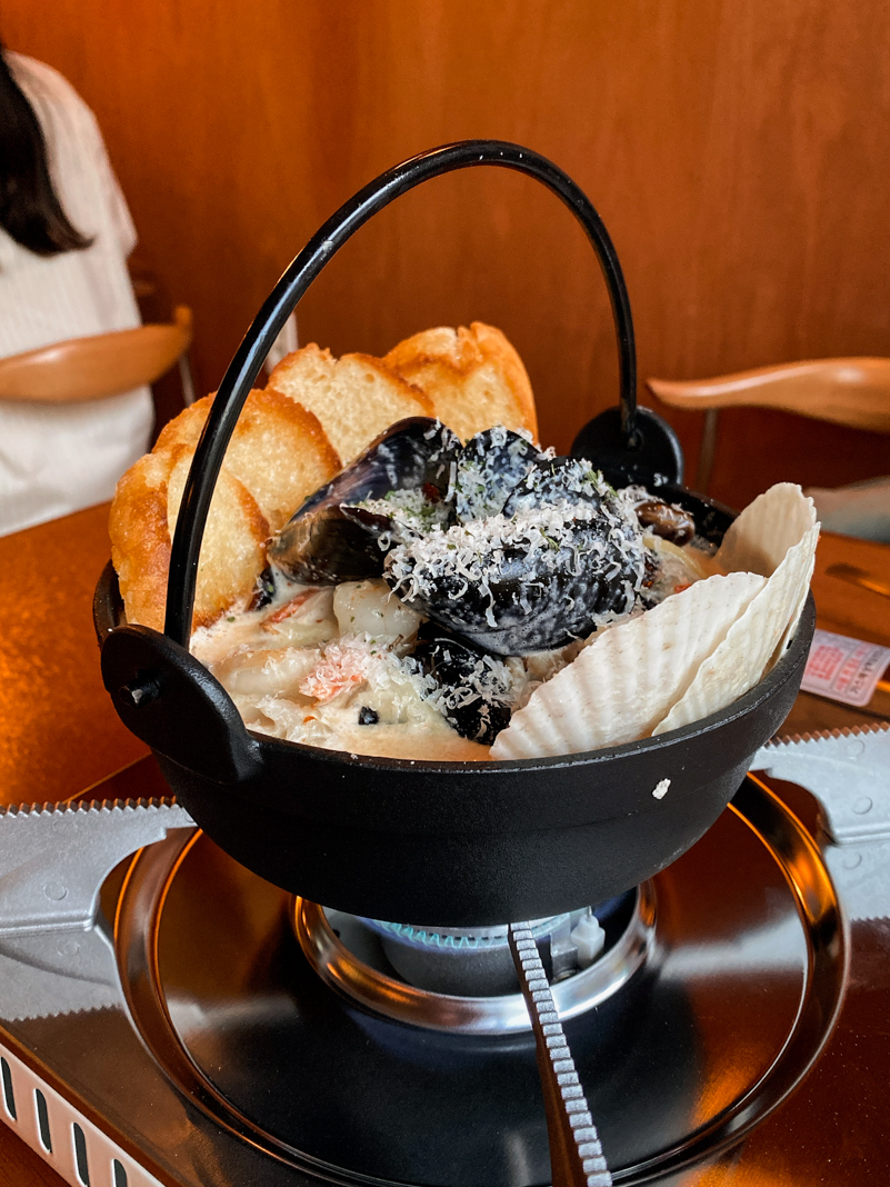 제주 맛집 단초를 처음 방문한 날에는 가리비와 홍합이 들어간 크림 파스타를 주문해봤다. 평소 까르보나라 파스타를 선호하는 내 입맛에는 소스가 무척 맛있었고 함께 들어 있는 빵에 찍어 먹기에도 좋았다. 안에 파스타 면도 듬뿍 들어 있기에 가성비 또한 좋은 술 안주였다.