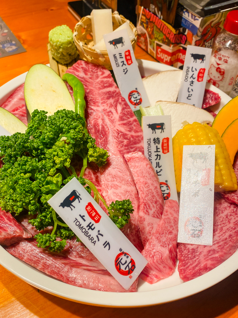 화로구이에 구워먹는 제주 모토이시 소고기는 부위마다 다른 식감을 느낄 수 있기에 하나 하나 비교하며 먹는 재미도 있었고 테이블에 놓인 소스를 찍어먹으면 더욱 색다른 맛을 즐길 수 있다.