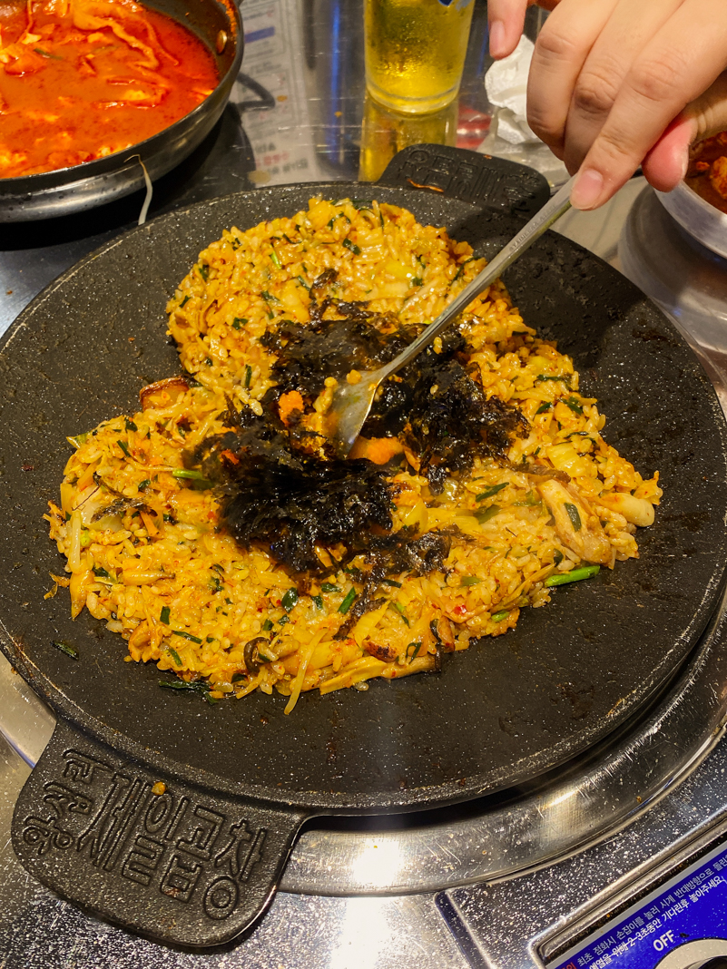 한우모듬을 먹고 조금 남긴 다음에는 볶음밥을 추가해 먹었다. 볶음밥을 주방으로 가서 만들어주는데 하트 모양으로 나와 데이트 장소로도 좋았고 맛 또한 짜지 않고 입에서 살살 녹았기에 제주 누웨마루 거리에서 추천하고 싶은 고기집이었다.