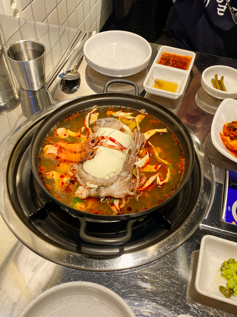 불판에 끓이는 동안 직원이 직접 먹기 좋은 크기로 잘라주고 각 부위의 특징을 설명해줘서 편하게 먹을 수 있었는데 직접 손질을 해서 그런지 냄새 없이 깔끔해 더욱 맛있게 먹었다.